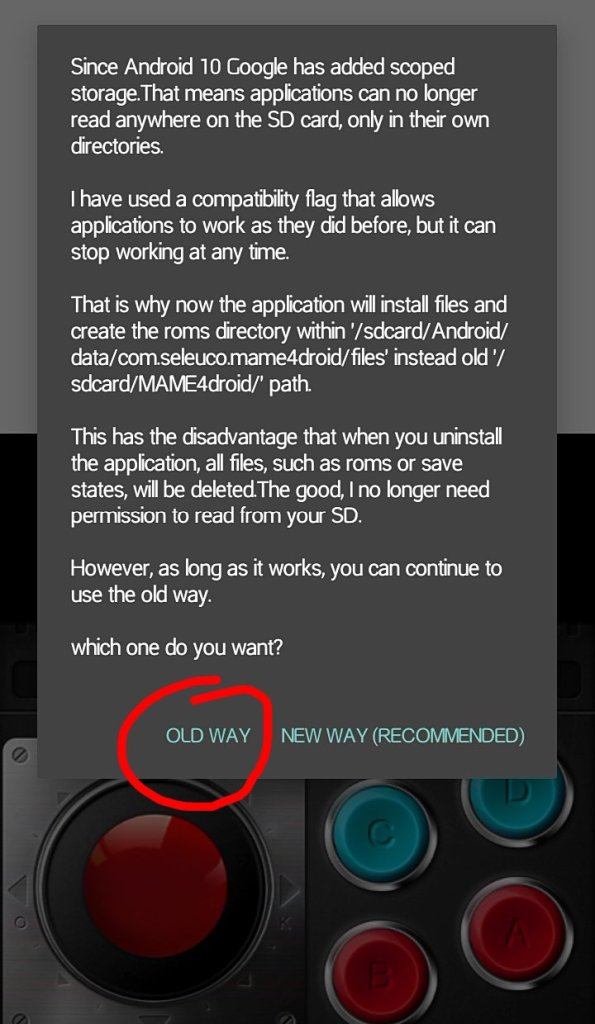 Now it’s time to set up MAME4droid. Begin by launching the app and completing the setup. When asked to create directories choose the “old way” as it’s easier and more user-friendly. Select the folder named “M.A.M.E.” that you’ve extracted earlier and voila! You now have access to all 135 games.